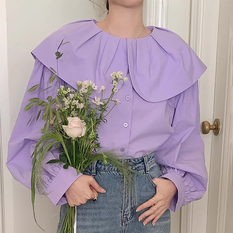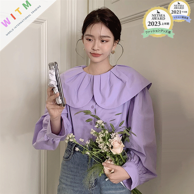 フレア襟が大人の魅力を引き出し、体型カバー効果も抜群。
