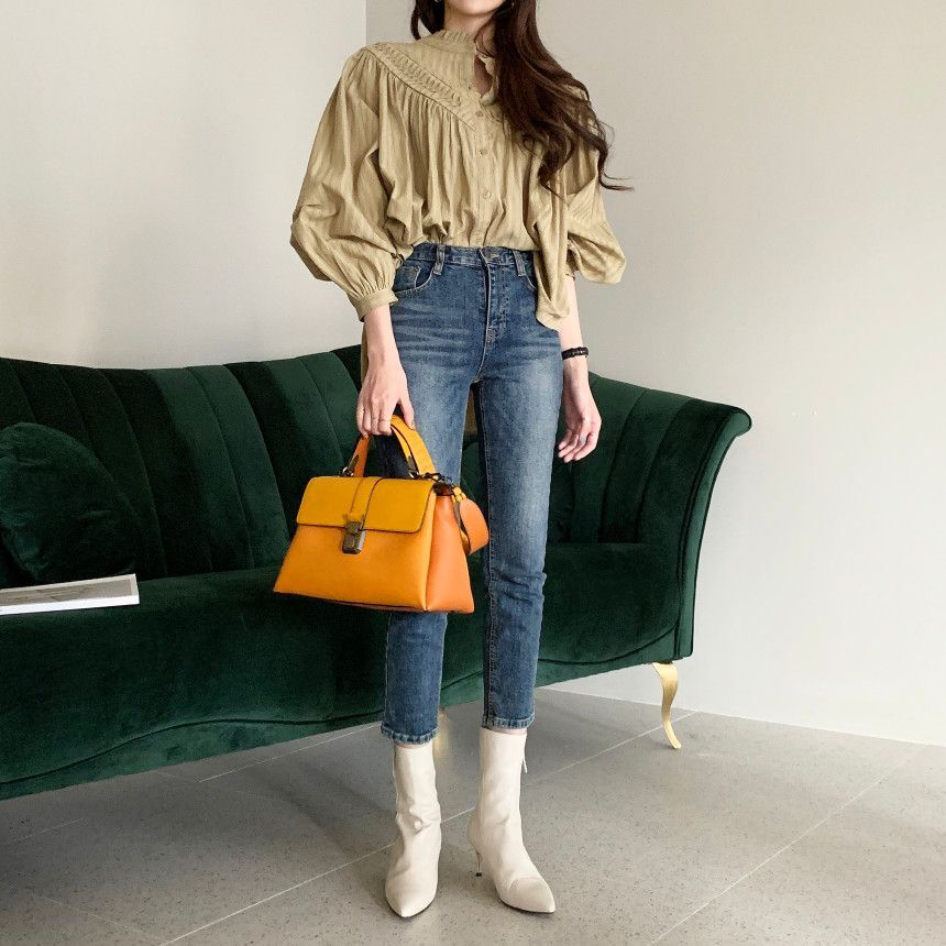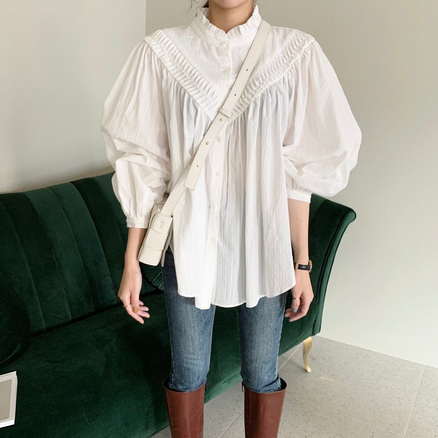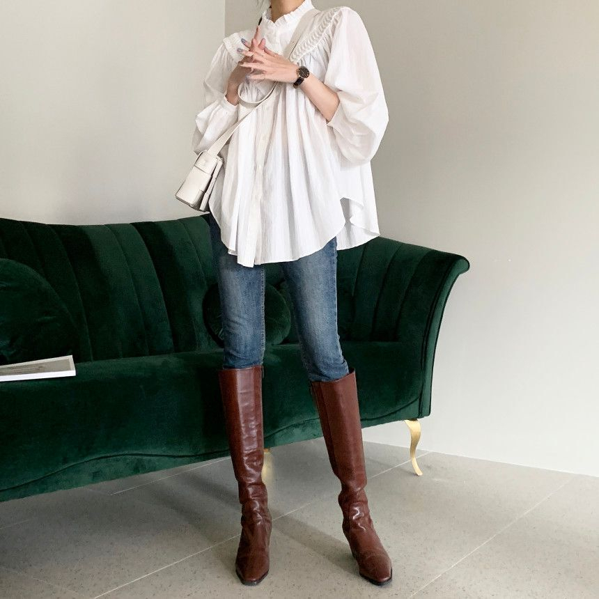 秋にぴったりな素材感のレディースシャツは今季注目の一枚。