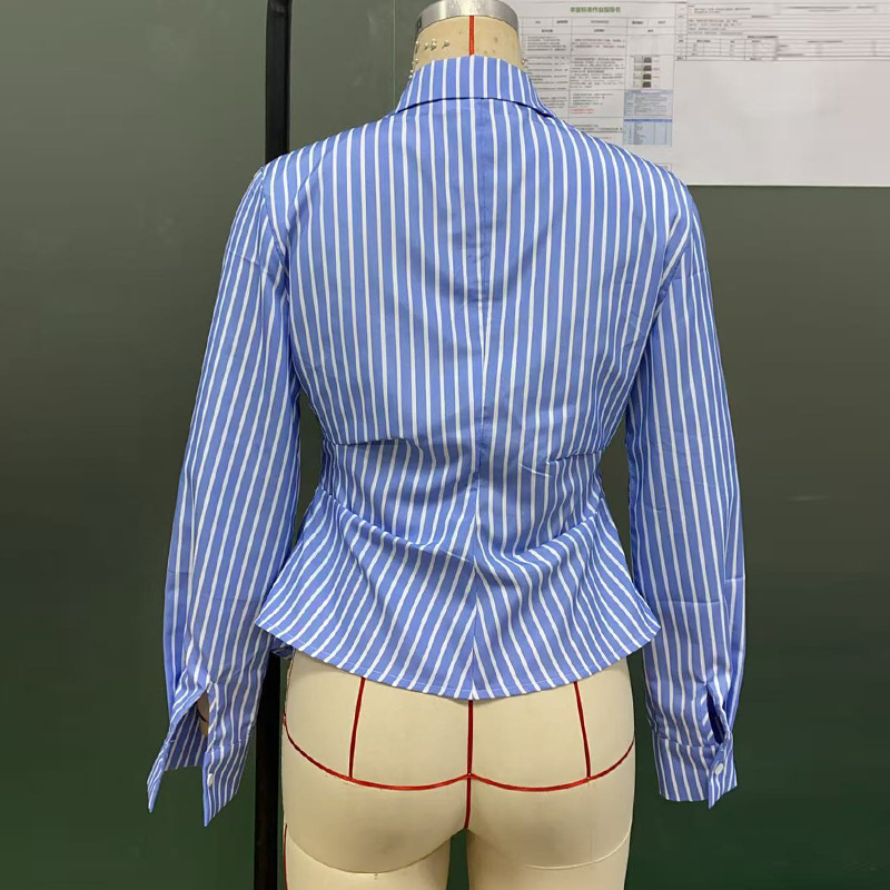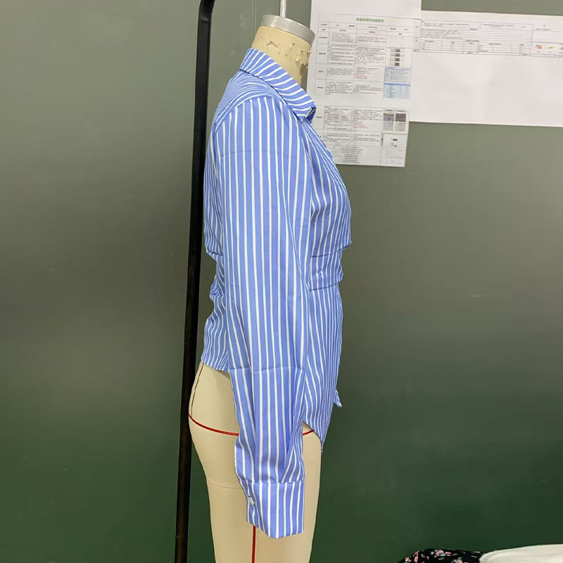 アシンメトリーな裾デザインが個性的で、きちんと感とおしゃれさを両立。