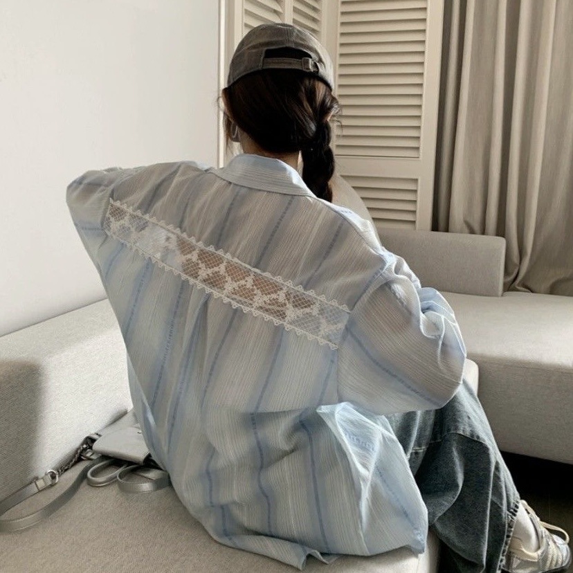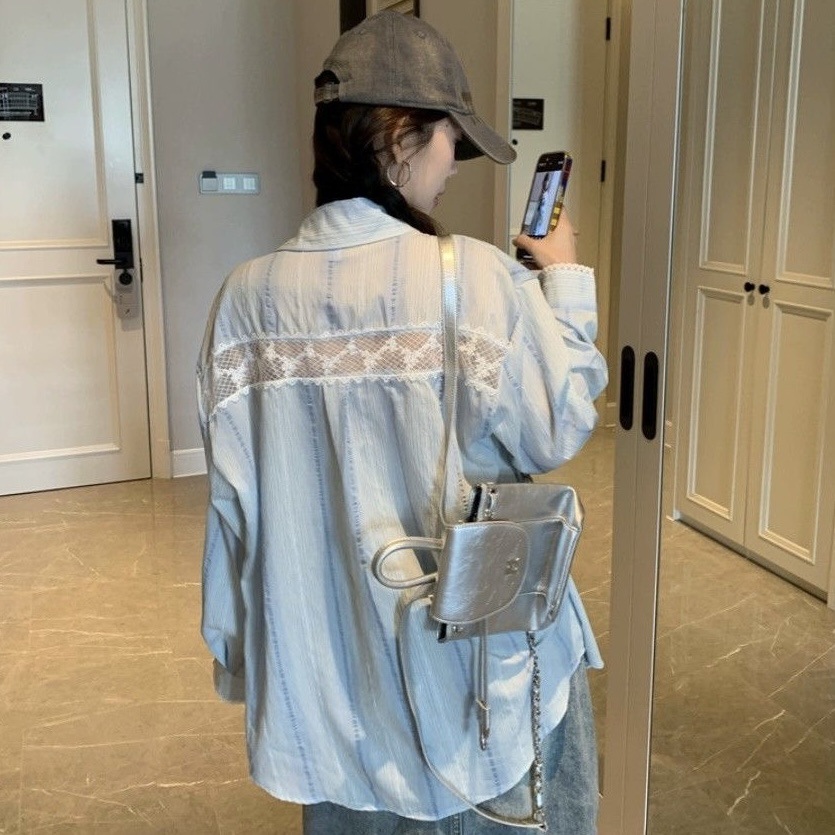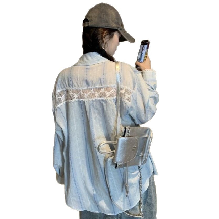 おしゃれなレース切替がポイントのレディースシャツです。