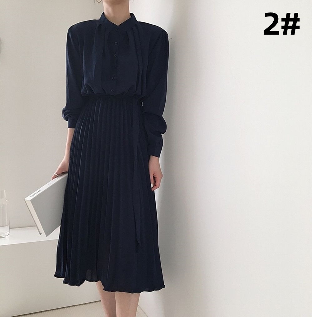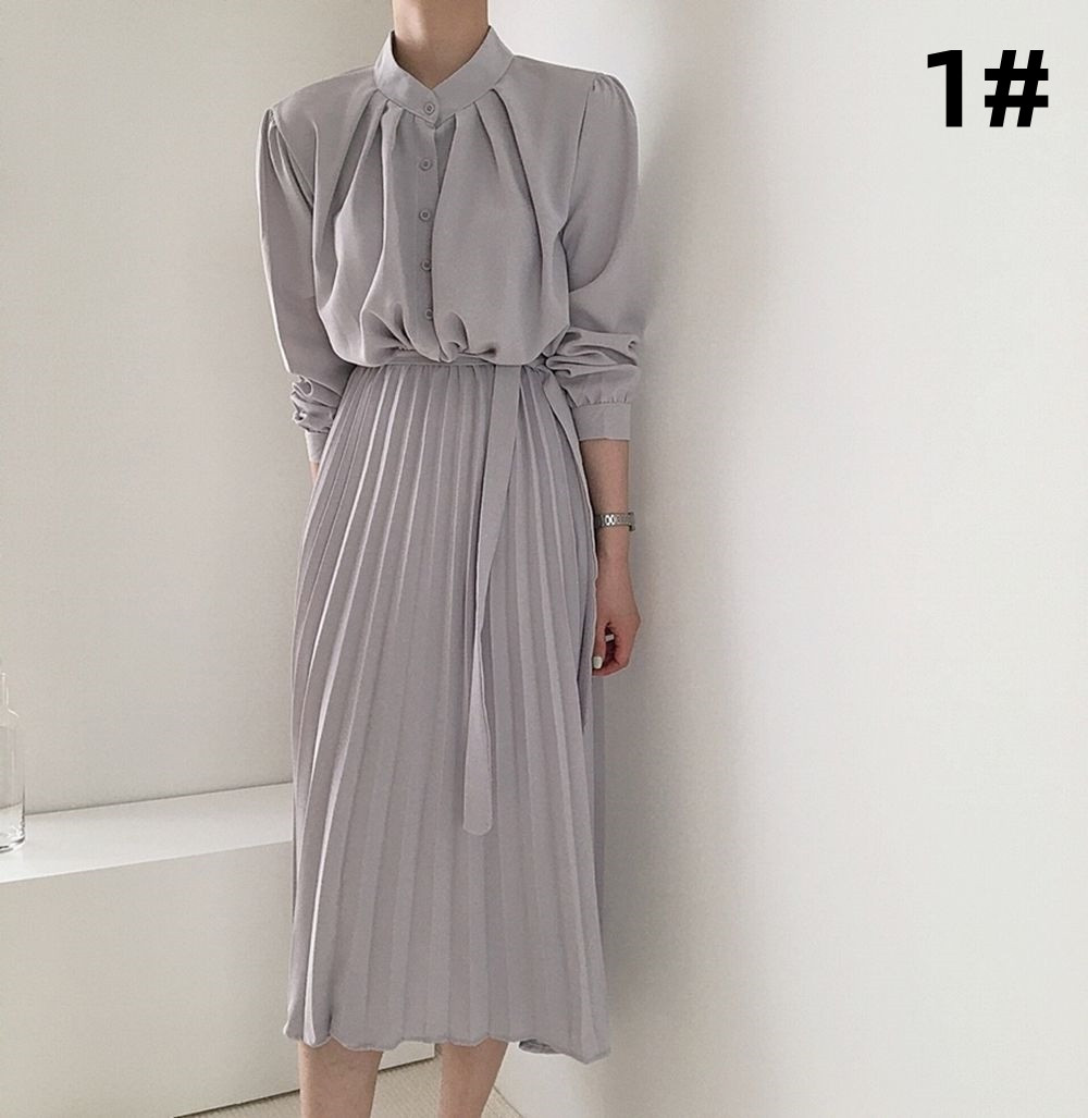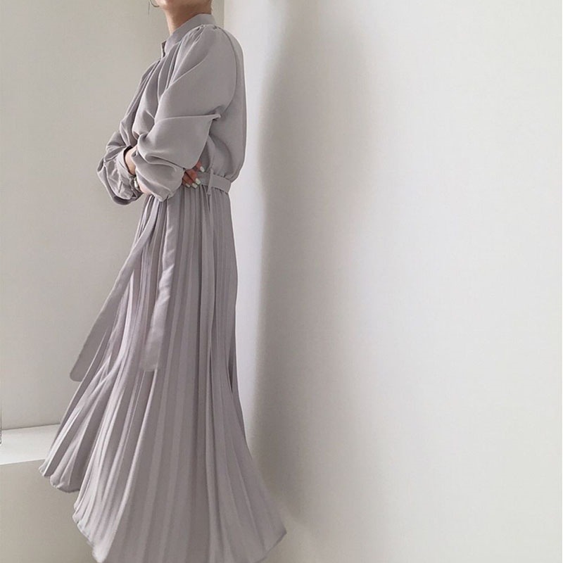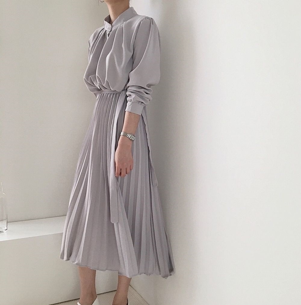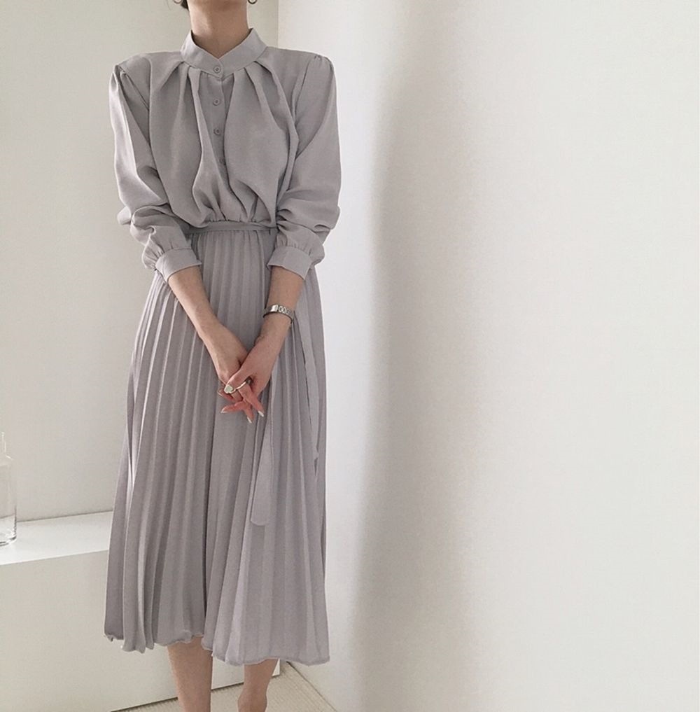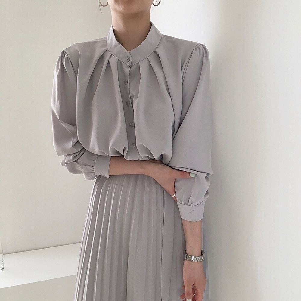 きちんと感のあるシャツデザインにプリーツスカートが女性らしさをプラス♪