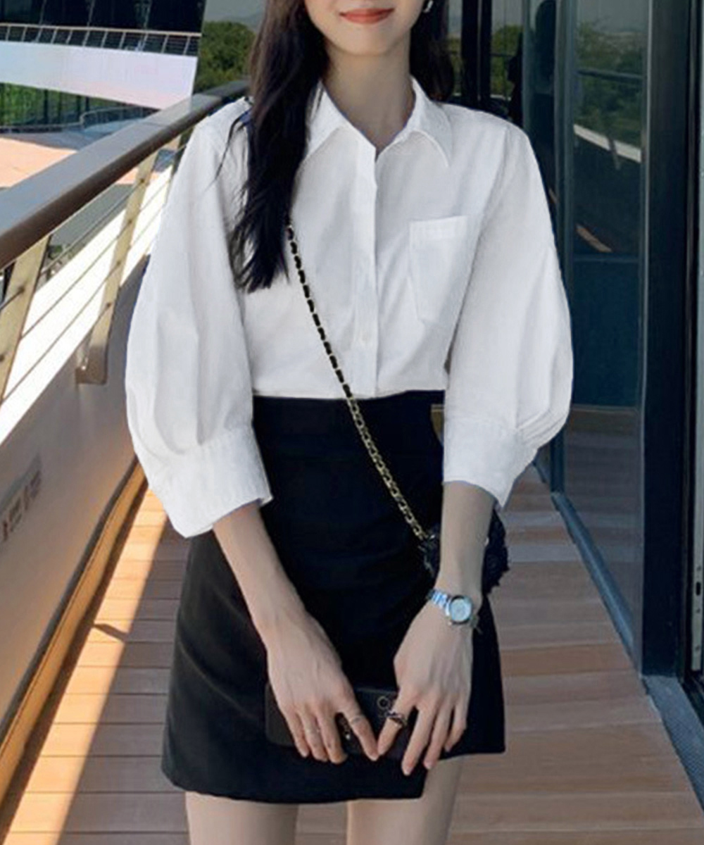 シンプルな白色で合わせるボトムスを選ばず、オフィスコーデからカジュアルまで幅広く活躍します。