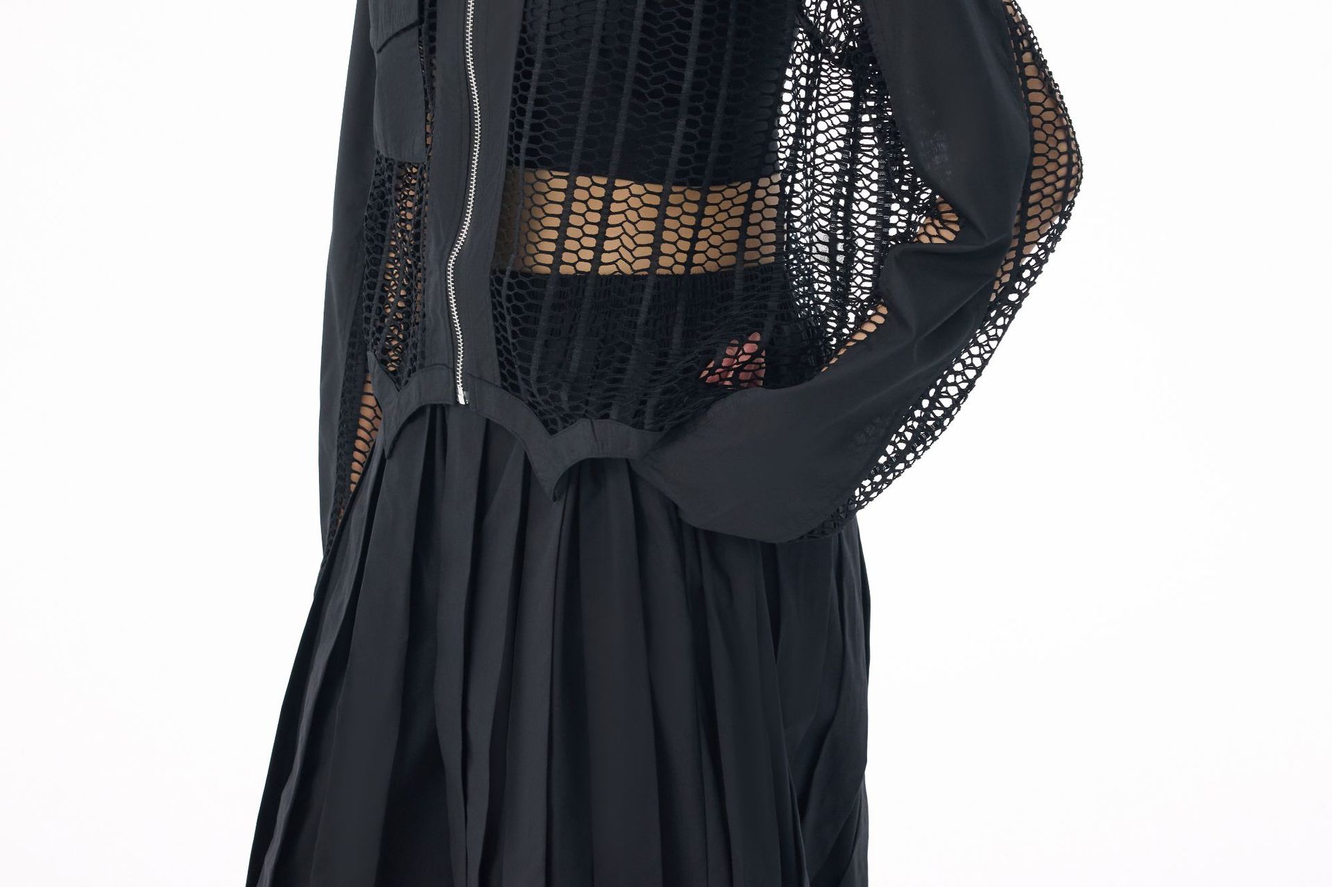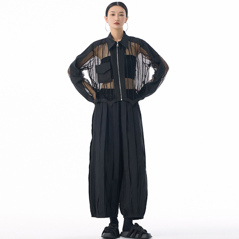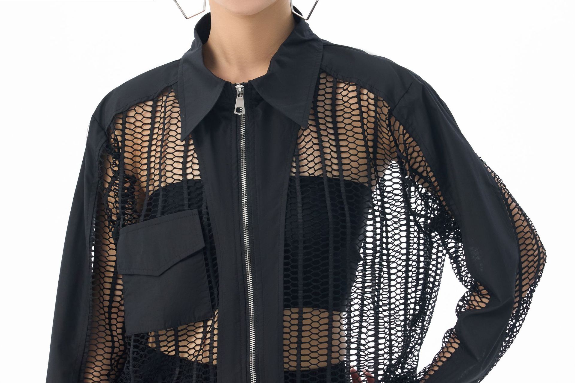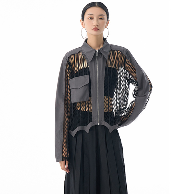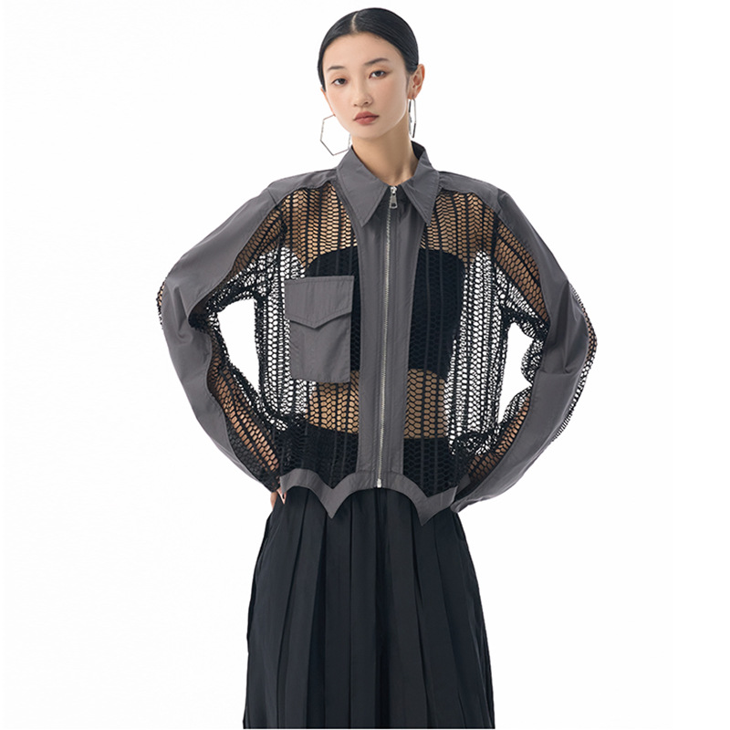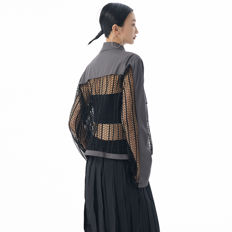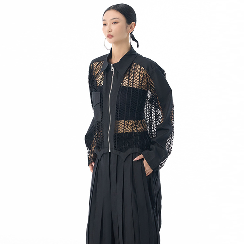 個性的なメッシュ素材を使用したトレンド感溢れるレディースシャツ。 透け感のあるデザインがモードな印象を演出します。 素材:ポリエステル ジップアップ仕様で着脱も簡単。カジュアルからきれいめまで幅広いスタイリングに対応します。