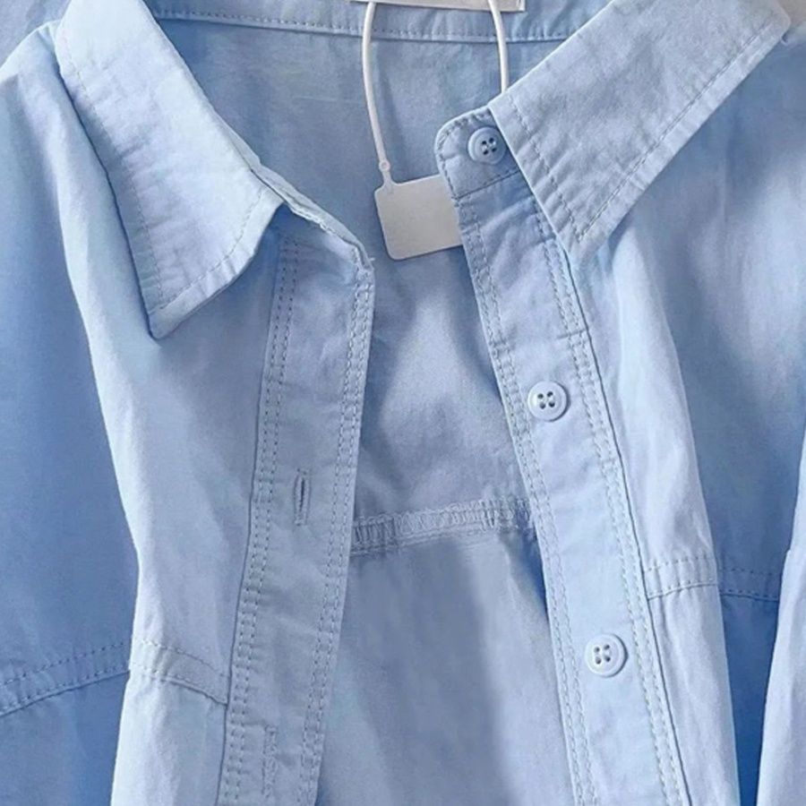 フロントの繊細なピンタックが上品なアクセントになったレディースシャツです。
